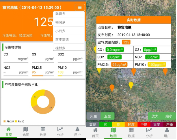 根據省級行政區域相應布設微型空氣站,監測PM2.5、PM10、SO2、NO2、CO、O3及氣象五參數,用以對行政區空氣質量考評,同時每日、旬、月發布各個區域空氣質量排名(并以短信方式發送給相關負責人),對空氣質量排名落后的網格環保負責人進行約談或問責,督促其落實屬地監管責任。